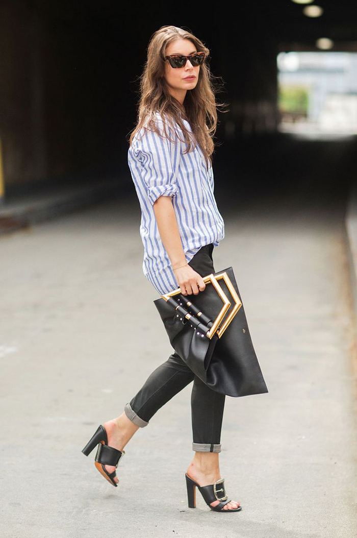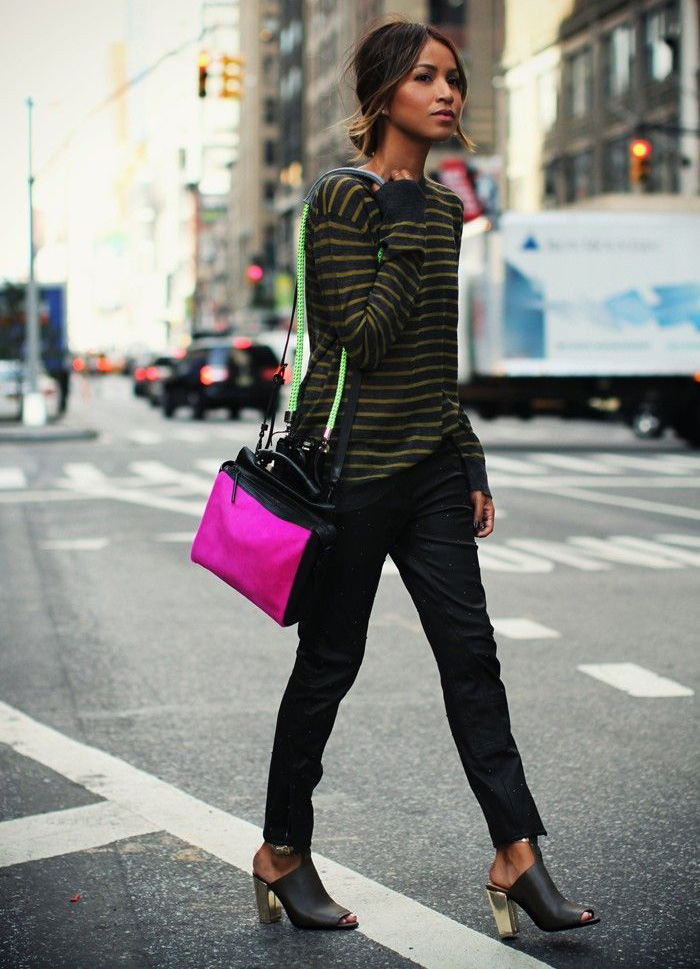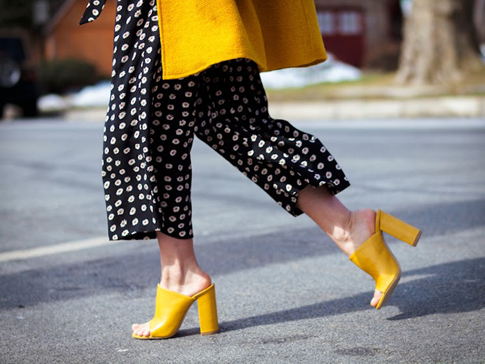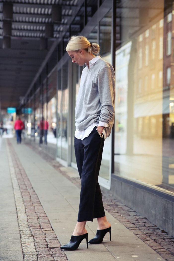 粗跟穆勒鞋算是时髦且舒服的典范,只要颜色搭配妥帖,可选择的余地就会非常广: