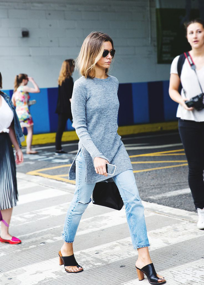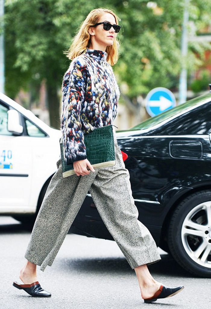 舒服是一切造型的前提,毕竟跛着脚踩高跟鞋只会美感尽失。这大概是平底穆勒鞋开始受宠的原因。