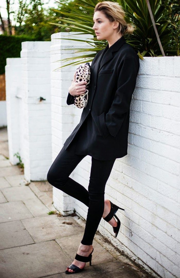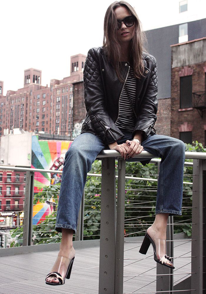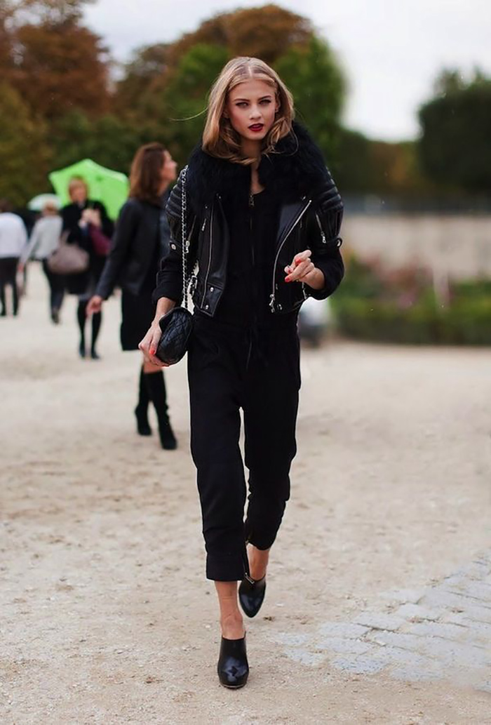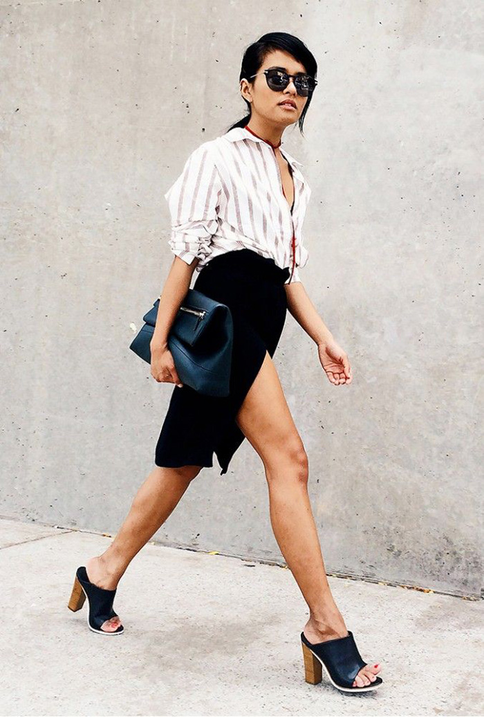 最经典的全黑粗跟穆勒鞋,很适合做层次感的穿搭: