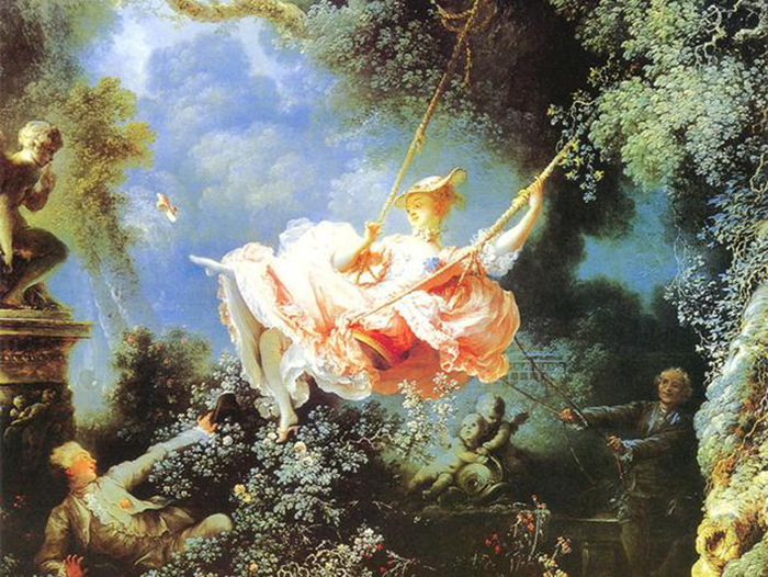 穆勒鞋 (Mules) 是古罗马鞋型的一种。Mule 是一个法语词汇,本意指后跟裸露、不露脚趾的鞋子。在这幅名为《秋千》的油画中,18世纪的画家弗拉戈纳尔画出了少妇脚上飞出的穆勒鞋,千娇百媚。