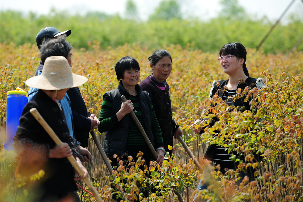 题图:2015年,安徽省肥西县柿树岗乡,安徽财经大学毕业生孔维玲在当地当村官,教村民们苗木栽培技术。来源:视觉中国