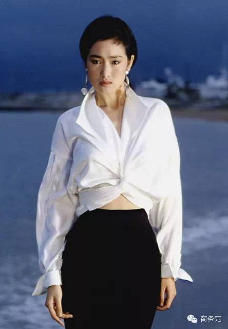 现今流行的白衬衫,巩俐23年前就在玩了,并且玩的很好。配上黑裤黑鞋,没有多余的饰品,只有一对素色耳环。这样随性的搭配,给四处喧嚣,闪光灯四起的电影节期间,留出了一块素雅的静谧。
