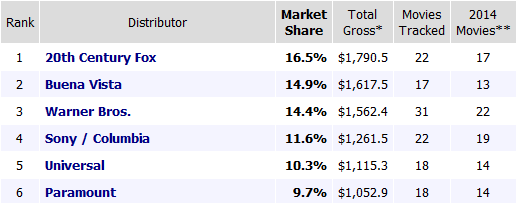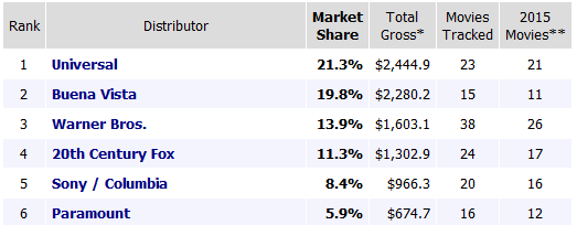 乐正传媒研发与咨询总监彭侃向娱乐资本论表示,虽然背后有大财团撑腰能渡过一些大小年,但好莱坞六大公司自己的日子不太好过。“2015年,六大公司中的3家票房收入较2014年都出现了超过10%的下降。马太效应凸显,有7部电影的票房超过3亿美元,比14年多5部。但是票房超过1亿美元的电影比14年少了7部,票房在5000万-1亿美元之间的电影比14年少了9部。中间层电影减少,这说明好莱坞电影投资的风险在增加。而传奇影业这样的公司,其在大制片厂的顶级大片里的投资额度往往是受限的。”