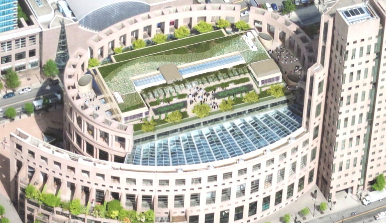 温哥华中央图书馆(Vancouver Public Library),又称VPL,计划在图书馆广场区域进行一个双重扩建项目,以增加新的阅读和社区空间,扩建中包括一个独特的公共屋顶花园。
