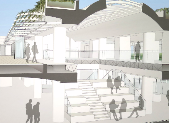 同时,该层的南北两侧都会建立大型的露天平台,人们可以在那里享受他们的餐点。当向公众开放时,平台上会先设立食品售货机。但很快,就会咖啡厅提供整套服务。