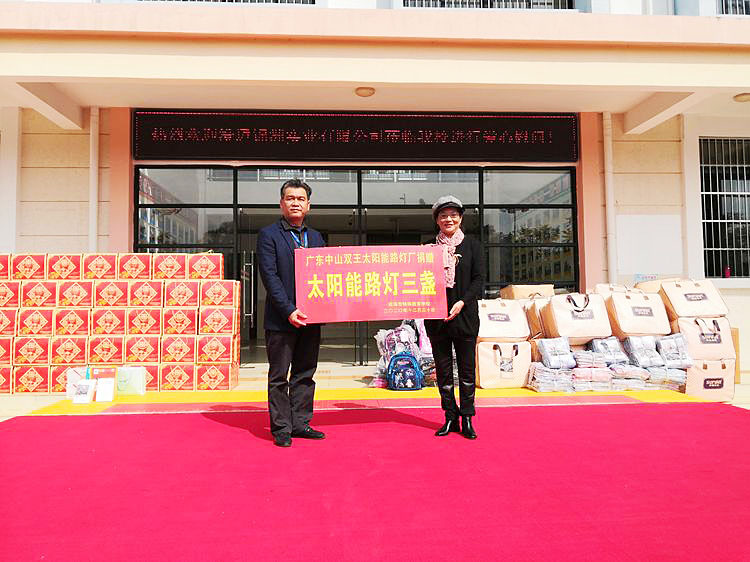 据悉,此次捐赠,澄迈锦州实业有限公司为特殊教育学校的孩子们精心准备了饼干、棉被、书包等爱心物资;广东中山双王太阳能路灯厂从特殊教育学校硬件配备实际需求出发,为其捐赠了三盏太阳能路灯。