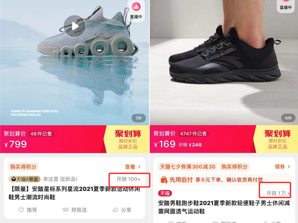 而且在一些“潮品”中,例如安踏和芬达、可口可乐合作款的鞋,既被嫌贵,也没有销量。