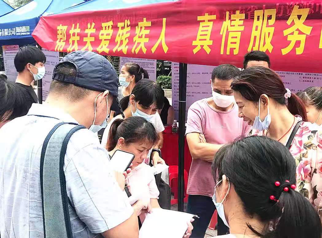 海口市:(文/图 符先森)6月11日上午,海口市残联主办的2021年“就业帮扶 同心圆梦”残疾人专场招聘会在海垦广场举行。