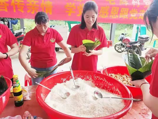 五指山市:6月11日,五指山市残联党支部、毛辉村党支部开展“端午节粽香传亲情 学党史感恩跟党走”主题党日活动。