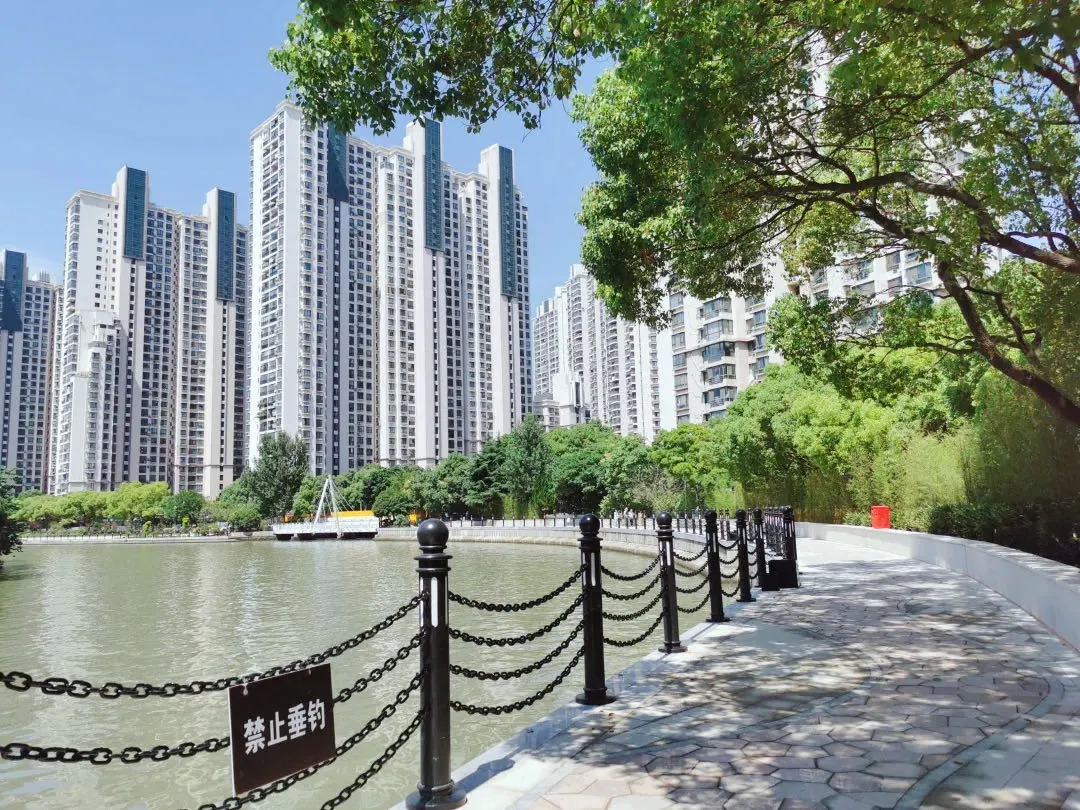 空间硬隔离无法令人满意?施工方案改为用绿化带隔开沿河步道与小区其他空间,既美观又方便;