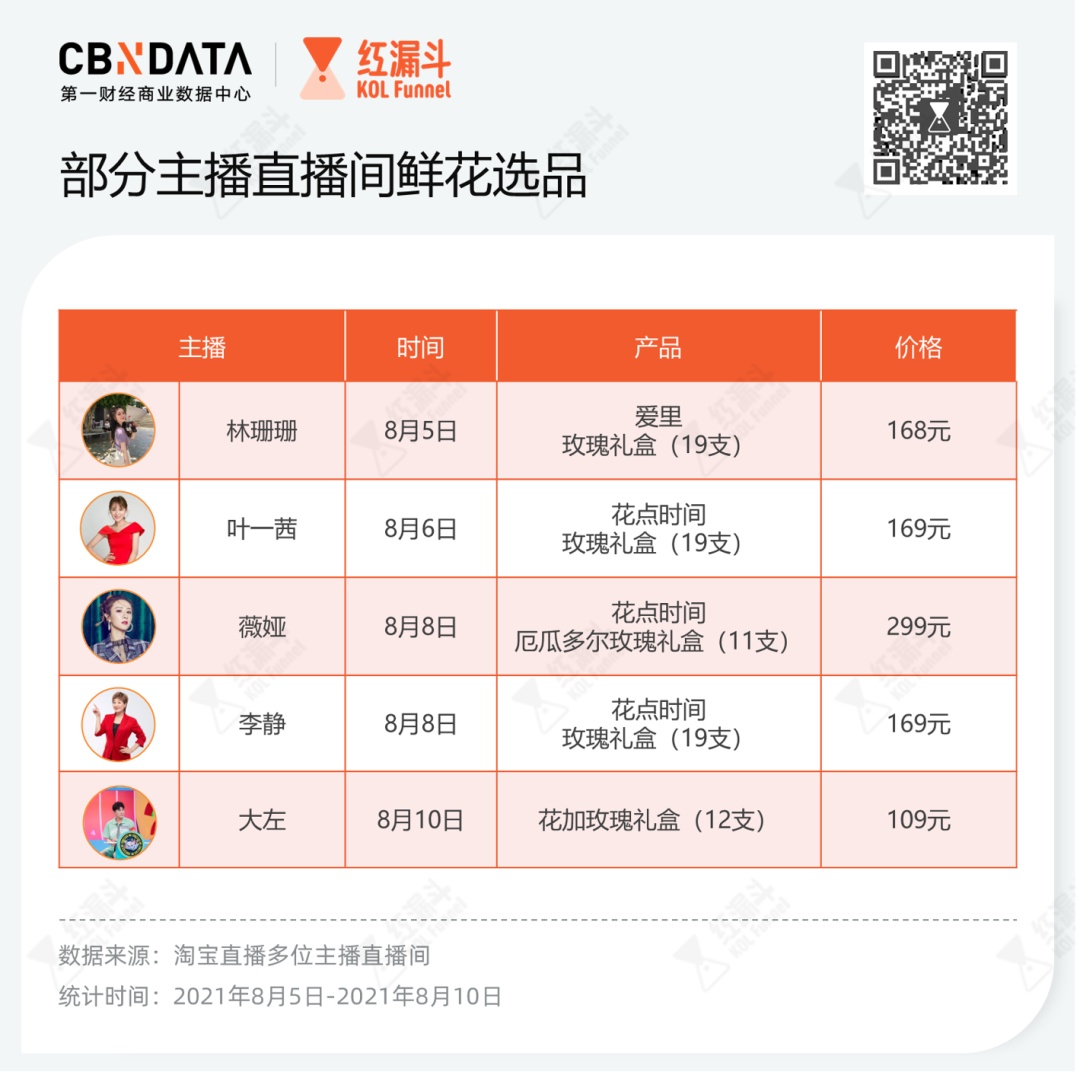 根据C站不完全统计,8月1日-8月10日,薇娅、李静、叶一茜、林珊珊、大左等主播在直播间上架鲜花礼盒,叶一茜的丈夫田亮也现身直播间助力。