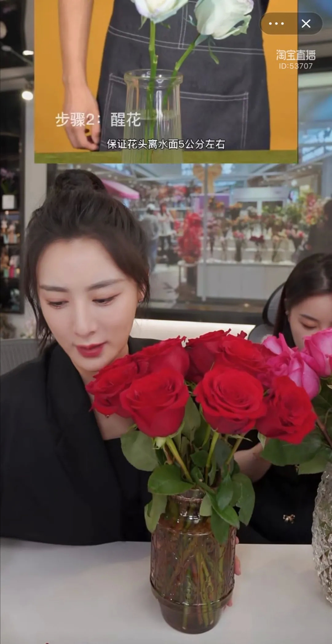 高昂的价格让这样品相极好的花束注定不会成为“次抛”。薇娅在讲解时,直播间上方有详细的鲜花养护视频片段,告诉用户怎样在收到花束后延长鲜花寿命和观赏时限。