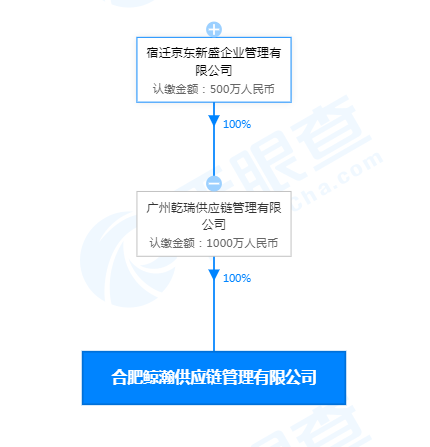 股东信息显示,该公司由广州乾瑞供应链管理有限公司100%控股,后者为宿迁京东新盛企业管理有限公司全资子公司。