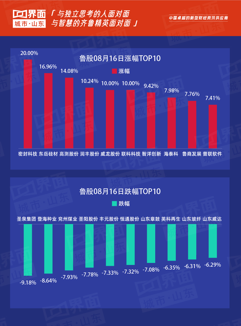 8月16日,山东118股上涨,125股下跌。