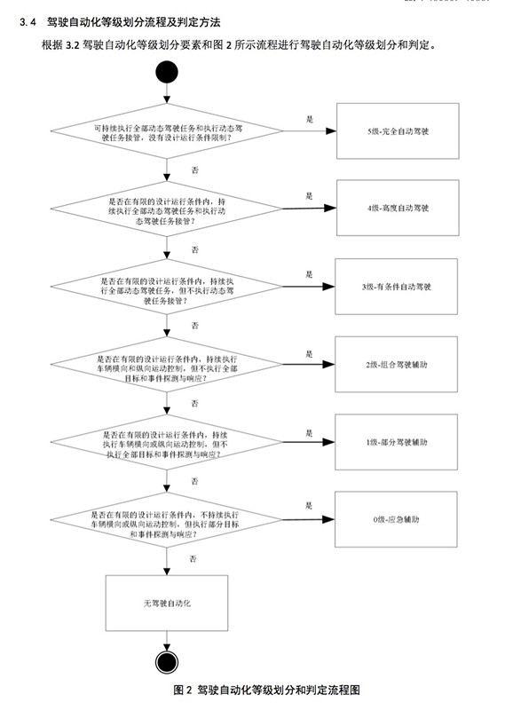此后,新版SAEJ3016(TM)对机动车驾驶自动化系统分类与定义进行了重新修订,并对部分或全部动态驾驶任务(DDT)的机动车驾驶自动化系统进行多次描述,为汽车行业提供一个分类标准,其中包含六个级别的驾驶自动化的详细定义,从无驱动自动化(0级)到全驱动自动化(5级) 及其在道路上的操作。