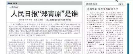 有意思的是,肖勇这篇名为《人民日报“郑青原”是谁》的文章最早发表于人民网强国论坛,此后却被《北京晨报》、新华网等多个权威媒体转载。或许,这正是暗示了官方对于这种解读的认可?