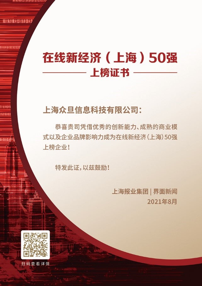 2021在线新经济(上海)50强榜单由上海报业集团 | 界面新闻发起,评选基于上海市在线新经济、数字化转型发展行动方案,面向上海杰出的新经济企业,根据企业规模、技术创新、商业模式、企业管理、品牌影响力5大指标,通过企业调研、企业申报、网络投票、专家评审等环节,选出50家代表企业。评选涵盖互联网、电商零售、企业数字化服务、在线金融、在线文娱、在线医疗、人工智能等多个领域。