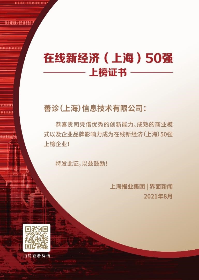 2021在线新经济(上海)50强榜单由上海报业集团 | 界面新闻发起,评选基于上海市在线新经济、数字化转型发展行动方案,面向上海杰出的新经济企业,根据企业规模、技术创新、商业模式、企业管理、品牌影响力5大指标,通过企业调研、企业申报、网络投票、专家评审等环节,选出50家代表企业。评选涵盖互联网、电商零售、企业数字化服务、在线金融、在线文娱、在线医疗、人工智能等多个领域。