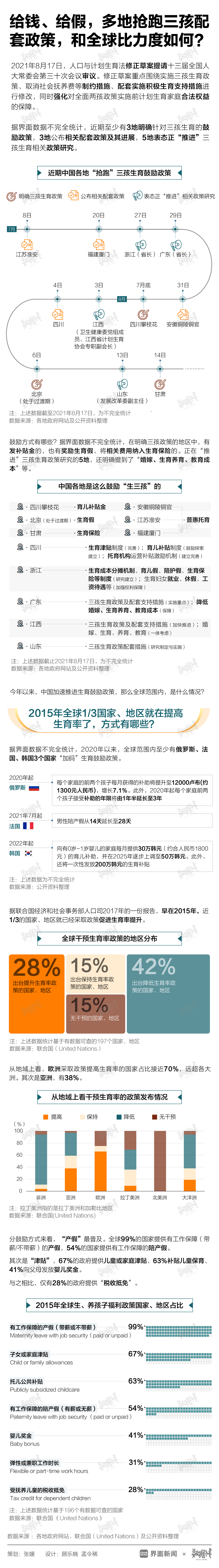 数据 | 给钱、给假,多地抢跑三孩配套政策,和全球比力度如何?