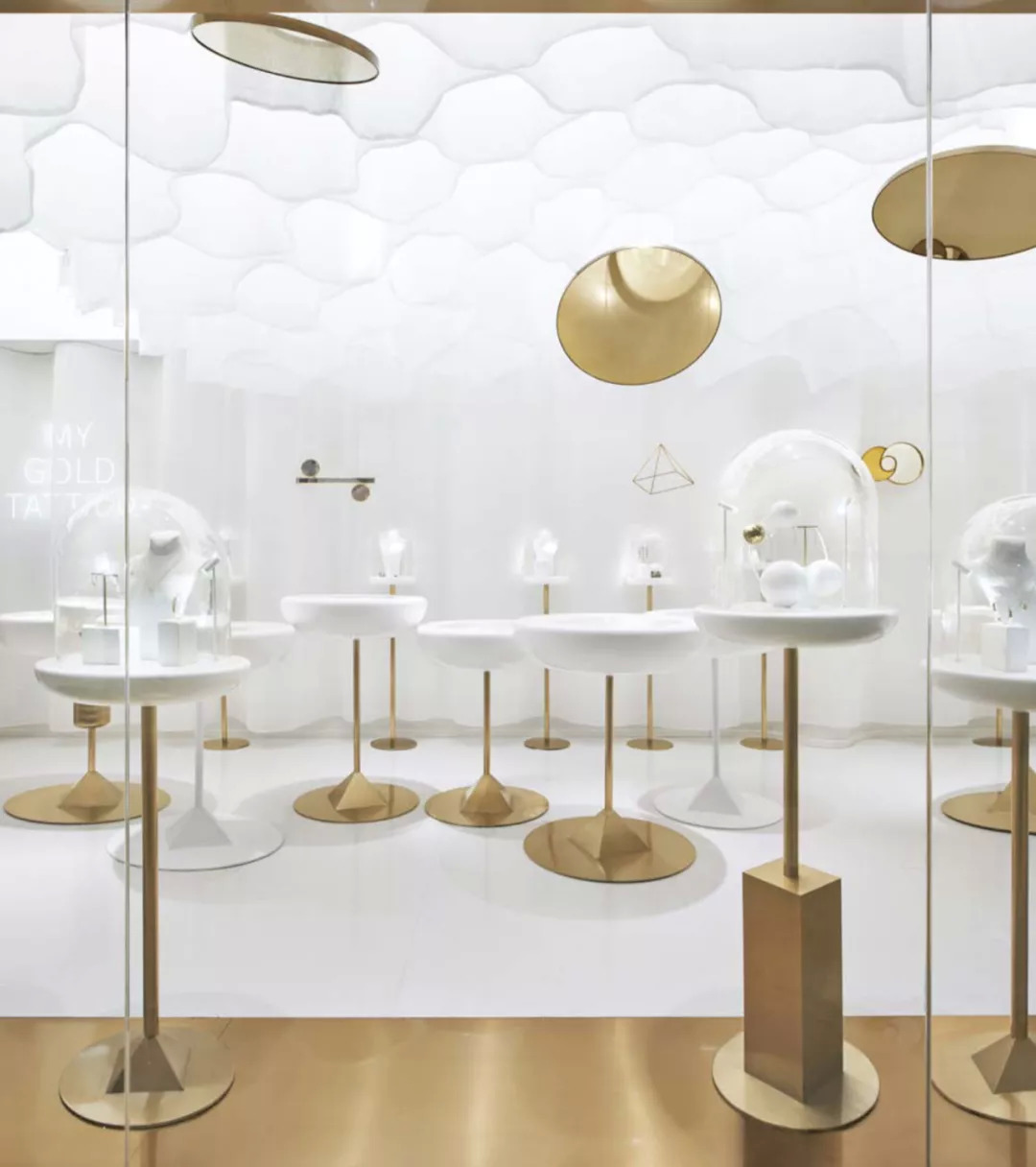 而在北京王府中环的YIN珠宝精品概念店中,冈本庆三的主要考虑则是如何把产品上的概念,延伸到空间上去体现。YIN的设计灵感并没有局限在具象的物体中,而是更偏向抽象的概念。把产品带给顾客的感觉与空间形成一体,是YIN珠宝精品概念店设计中的一大挑战。