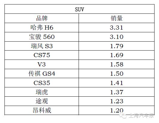 3月份SUV销量排行