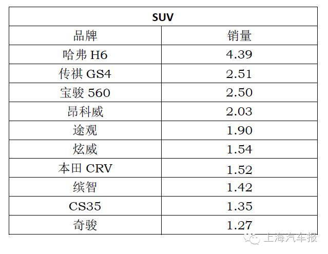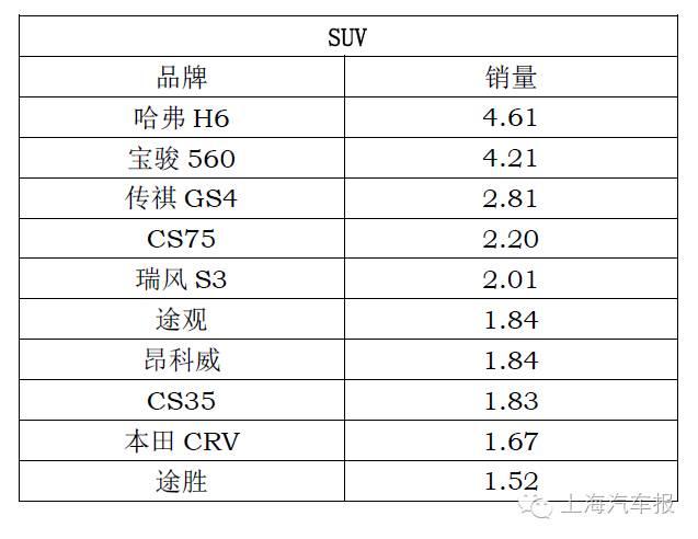 4月份SUV销量排行