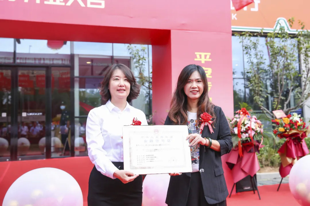 青岛银保监局股份制处副处长宋崑为平安银行青岛自贸区分行颁发金融许可证。