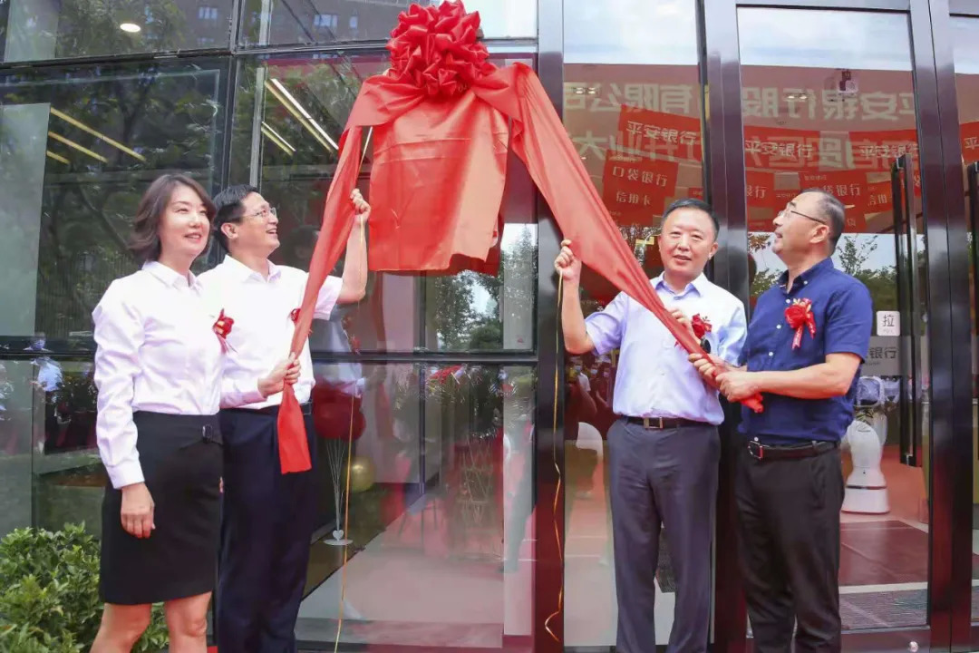 青岛自贸区管委主任、西海岸新区工委副书记赵士玉,青岛市地方金融监督管理局局长王锦玉,人民银行青岛市中心支行副巡视员顾延善与平安银行青岛分行党委书记、行长王珺共同为平安银行青岛自贸区分行揭牌。