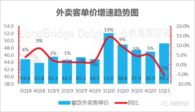 据美团今年一季度财报显示,外卖客单价为49.2元。这一数字虽然比去年三季度的45元/单,和四季度的48.2元/单有所提升,但是与去年同期相比却下降了5.5%。
