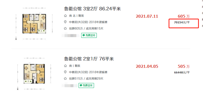 而根据链家网显示,目前项目周边的二手房挂牌均价已超6万/㎡,距离项目最近的鲁能公馆项目目前7月挂牌均价近6.4万/㎡,最近的成交均价为70154元/㎡。