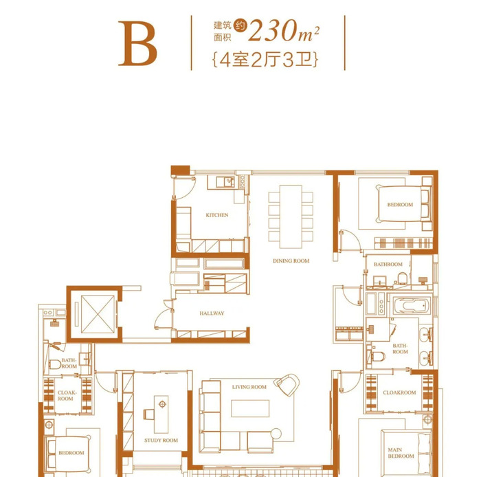 万科翡翠滨江190㎡户型的示范单位实景图:
