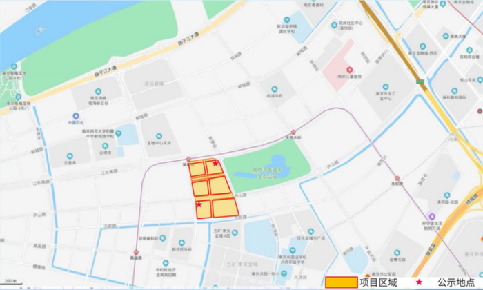 项目位于南京市建邺区河西新城南部地区,毗邻秦淮新河。地块北邻螺塘路,西接规划支路,南面秦新路,东至中和路。