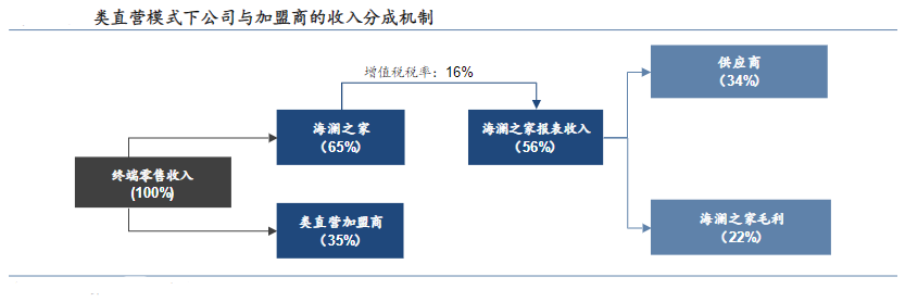 海澜之家缩短了加盟模式的代理环节,直接与各加盟商门店签订合约。门店的所有权是加盟商的,但是管理权归海澜之家,加盟商就像是一个投资人的角色,而海澜之家更像一个投资理财产品。当时,加盟商进入海澜之家分销体系,大约需要准备200万元左右的资金,其中一半用来承担店铺租金、水电物业、装修、工商税费、人员薪金和物流运输等费用,另一半是交付给海澜之家的货品押金。
