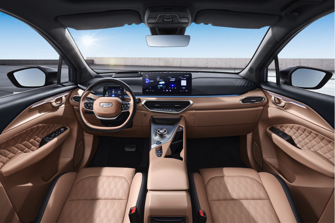 产品层面,新车造型并无变化,依然延续了几何汽车“多维流动生命体”设计理念,一体式前脸设计,搭配光棱之刃LED前大灯。