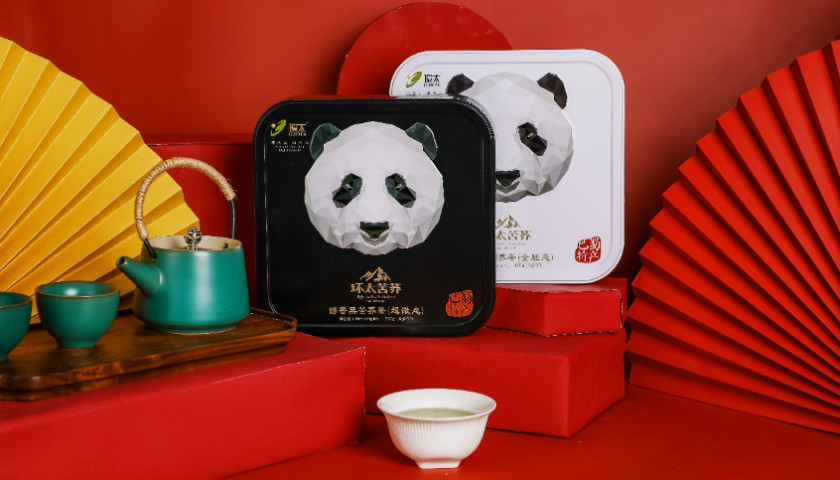 山水熊猫盖碗杯