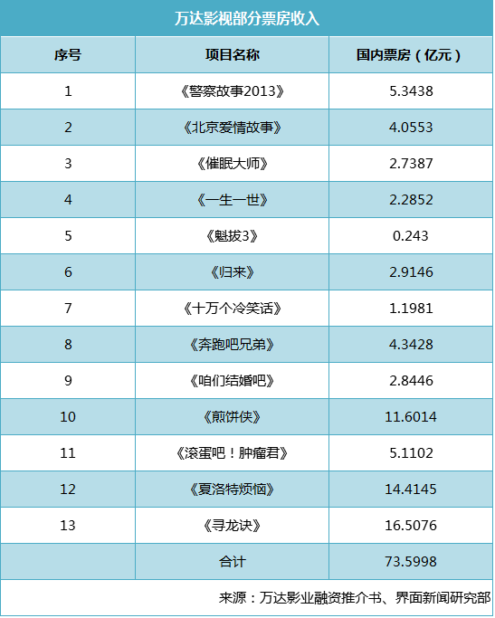 而乐视影业注入乐视网之后,乐视网旗下也将形成影视剧发行制作的乐视影业、电视剧发行制作的花儿影视,以及渠道方乐视视频。这让人不得不将两个上市时间类似、体量类似的影视制作发行商类比一番。界面新闻对比了将注入万达院线的万达影业和乐视影业的业绩承诺情况和过往参与投资影片的票房情况,发现乐视影业虽然此前票房收入不及万达影视,但实现利润的决心却比后者大得多。