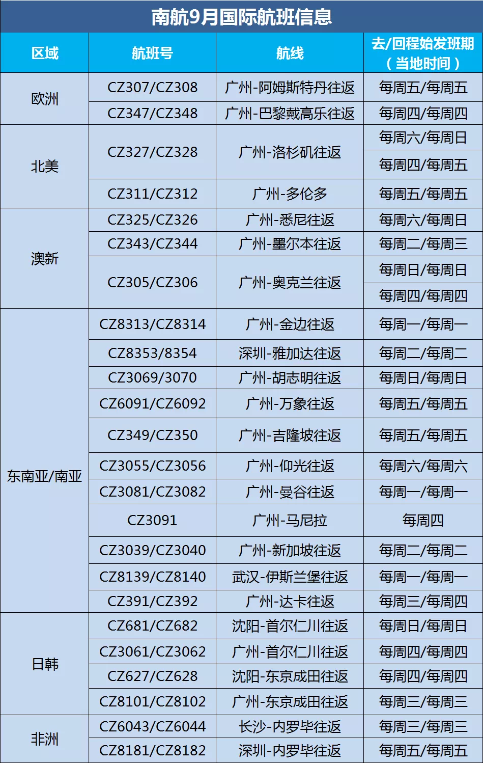 界面新闻从南方航空方面获悉,自9月1日起,南航每周可执行国际航线共计25条,其中涉及广州航线19条。