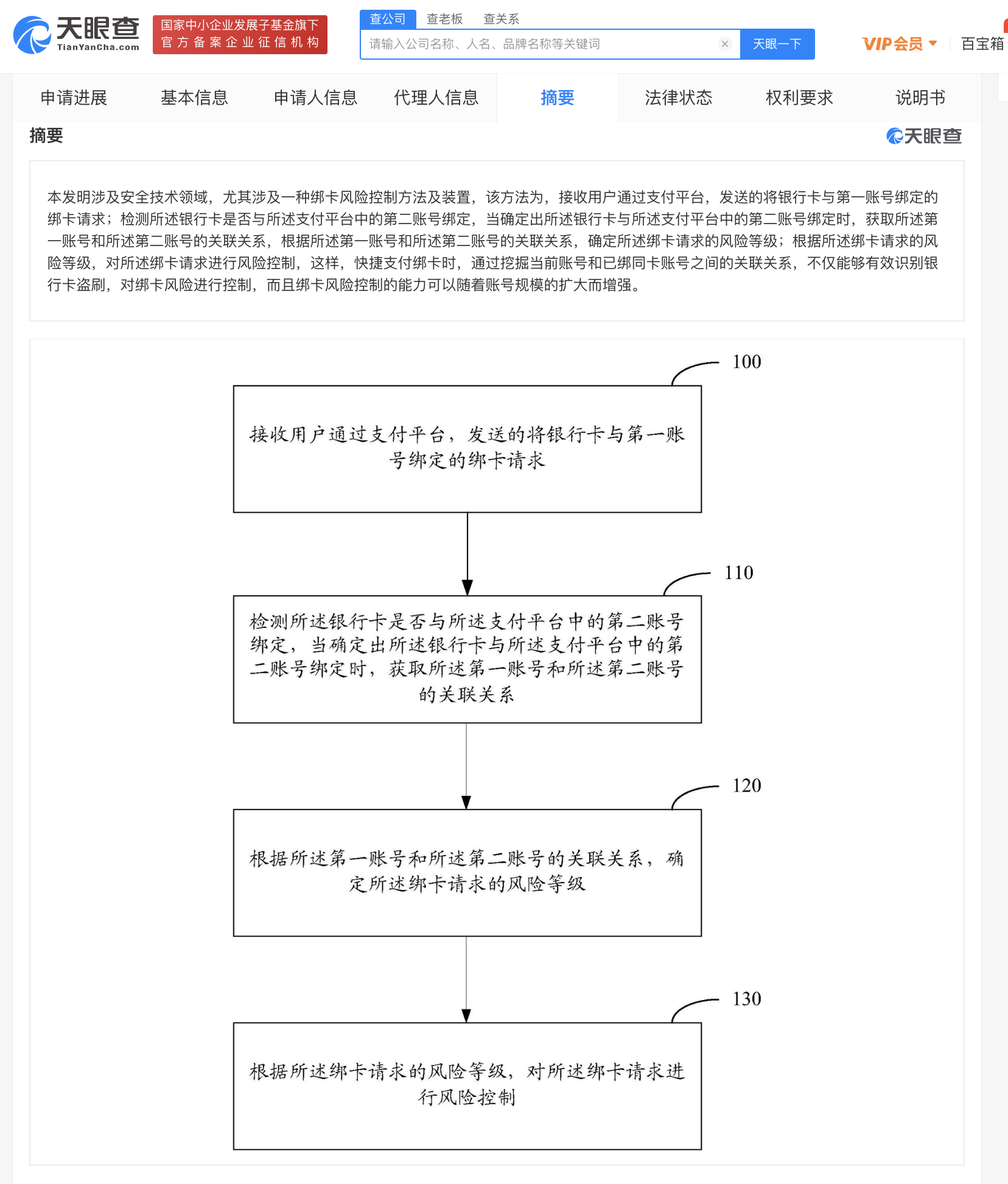 专利摘要显示,该方法为,接收用户通过支付平台发送的将银行卡与第一账号绑定的绑卡请求;检测所述银行卡是否与所述支付平台中的第二账号绑定,当确定出所述银行卡与所述支付平台中的第二账号绑定时,获取所述第一账号和所述第二账号的关联关系,根据它们的关联关系,确定所述绑卡请求的风险等级并进行风险控制。在快捷支付绑卡时,通过挖掘当前账号和已绑同卡账号之间的关联关系,不仅能够有效识别银行卡盗刷,对绑卡风险进行控制,而且绑卡风险控制的能力可以随着账号规模的扩大而增强。