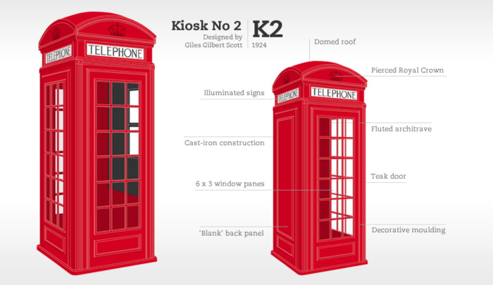 红色电话亭最初的设计诞生于1920年,由英国邮政总署操刀设计,但很快因“老气横秋”而被淘汰,Scott 设计的其实是第二代电话亭,最初是银色,而后被邮政总署改为红色,意外地成为伦敦街头最醒目的标志。