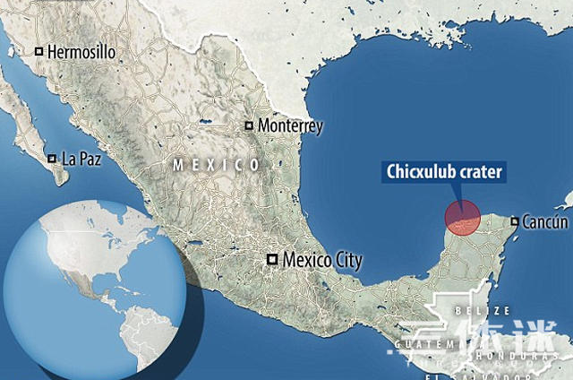 本次恐怖的陨石撞击的遗址就是世界上最大的陨石坑——希克苏鲁伯陨石坑,坐落于墨西哥的尤卡坦半岛。6500万年后的今天,陨石坑体地表已不可见,但据推测其呈椭圆形,平均直径高达180千米。