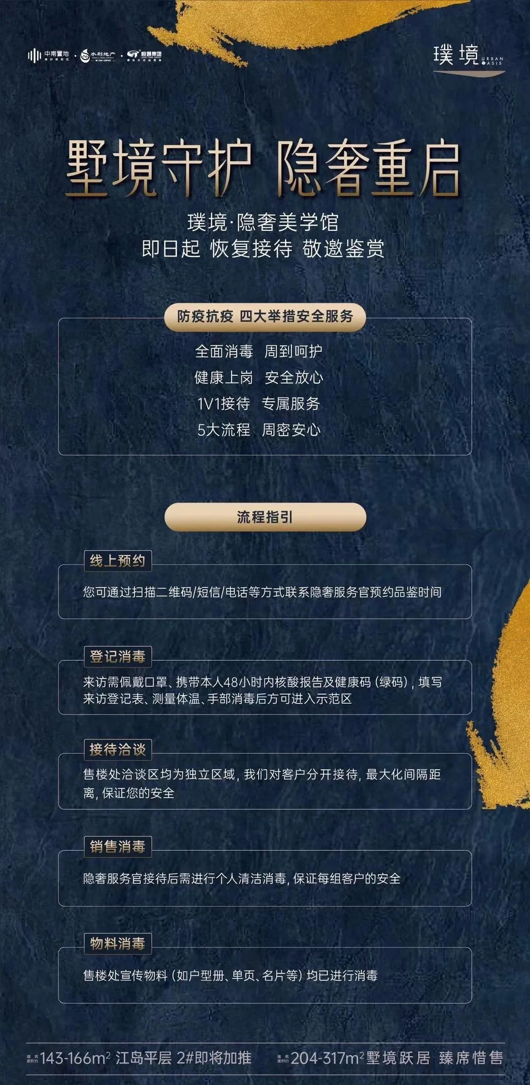 璞境售楼处于8月18日起恢复接待,买房人可通过二维码、短信、电话等方式联系置业顾问预约参观,参观须佩戴好口罩、准备48小时内的核酸检测报告以及健康码(绿码)。