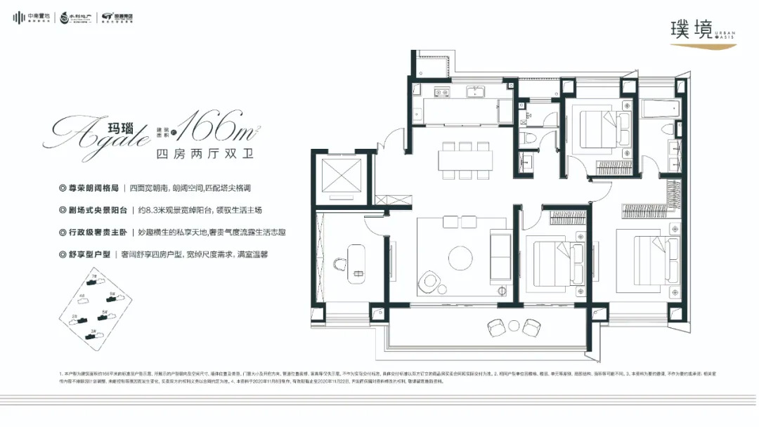 建面约166㎡四房两厅双卫