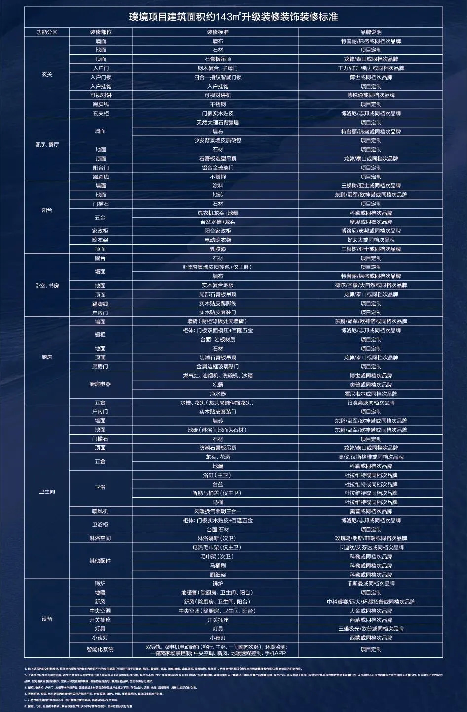 建面约143㎡四房装修配置:
