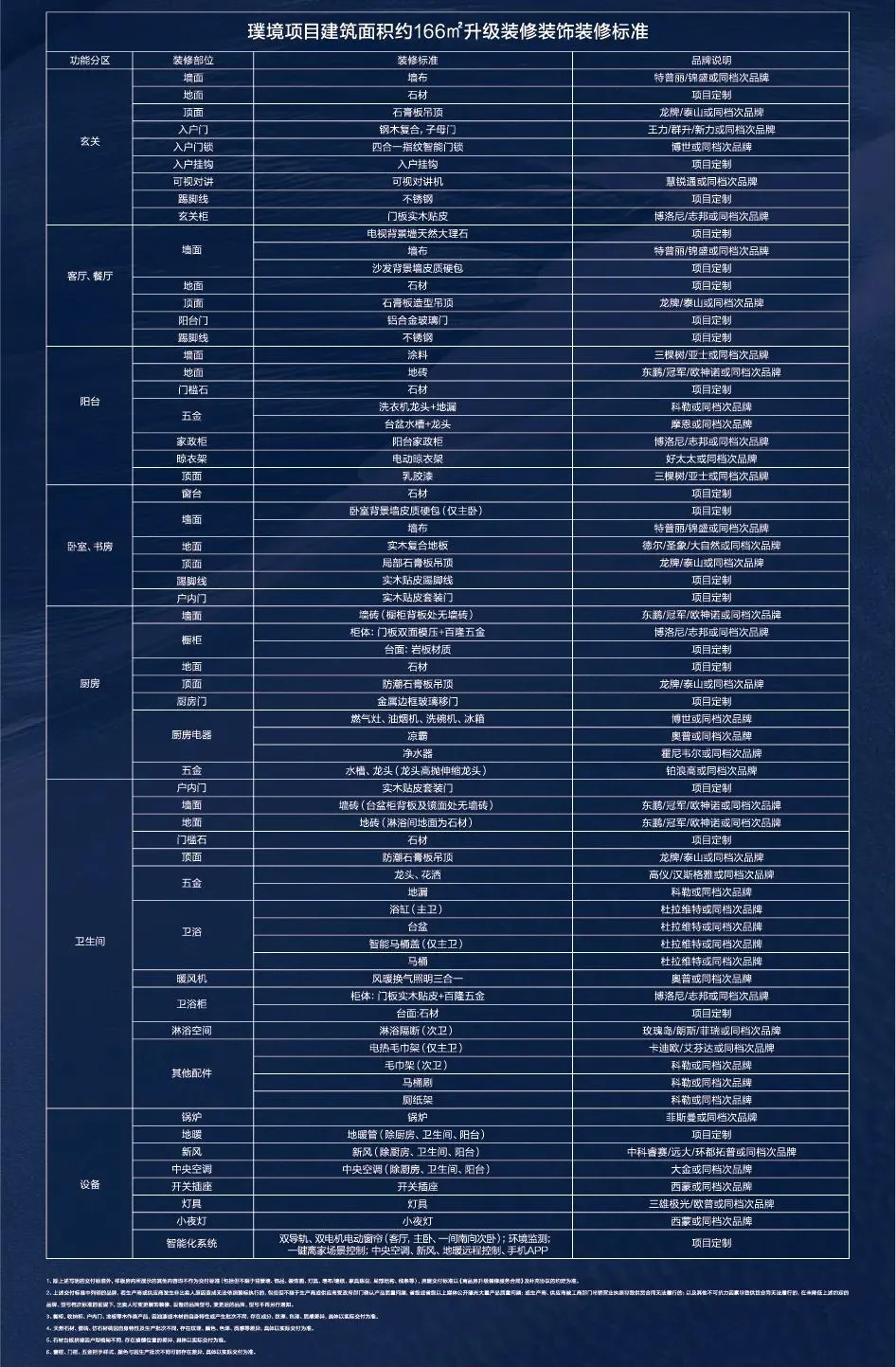 建面约166㎡四房装修配置: