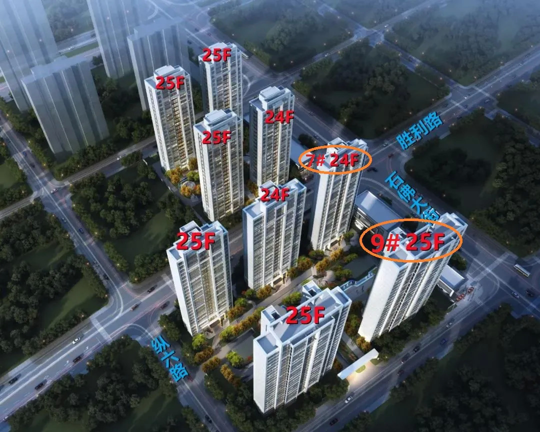 本次首开的7号楼24层,2梯2户,户型140㎡;9号楼25层,2梯4户,户型130-110-110-130㎡。其中,9号楼也更靠近江边,未来高层有望成为江景房。