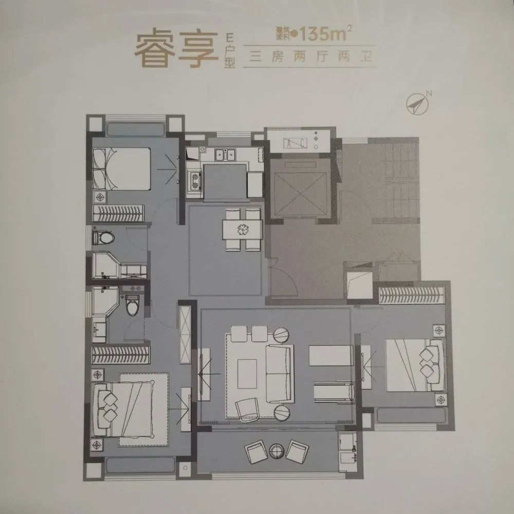 其中建面约110㎡、130㎡、135㎡户型均是三室两厅两卫设计;建面约140㎡跟160㎡均是四室两厅两卫设计,项目整体适合改善以及终极改善的客群。