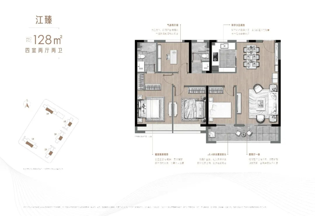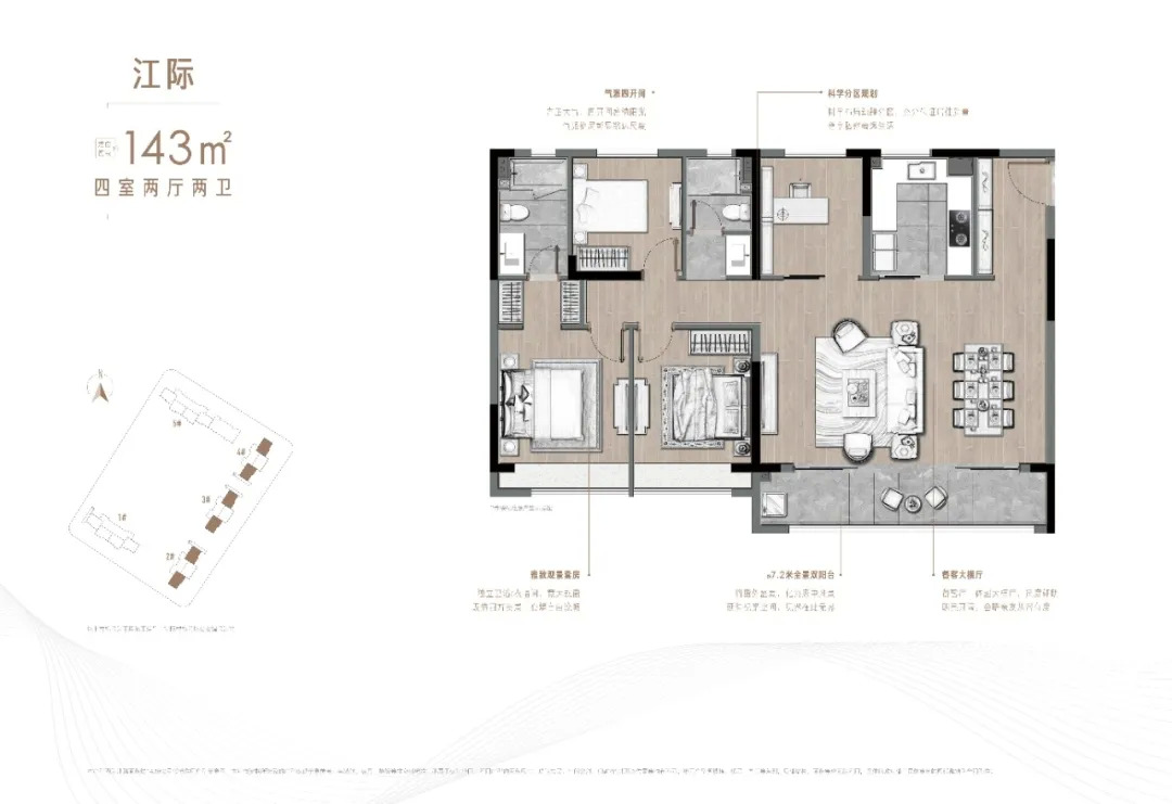 建面约 143㎡4房2厅2卫 户型