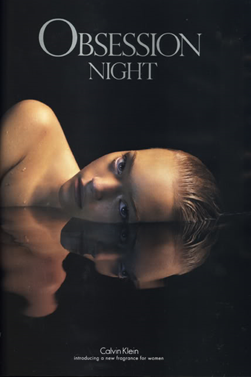 之后的CK好像走上了一条“上瘾”的道路。模特身上的衣服越穿越少,不仅如此,男模特和女模特还同框了,虽然大家也没做什么,但无形中在搅动看客的力比多。1985年,在名为“迷惑”(Obsession)的香水广告里,CK给模特写出了这样的台词:“如果拥有迷惑是一种罪恶,那就让我沦落好了。”