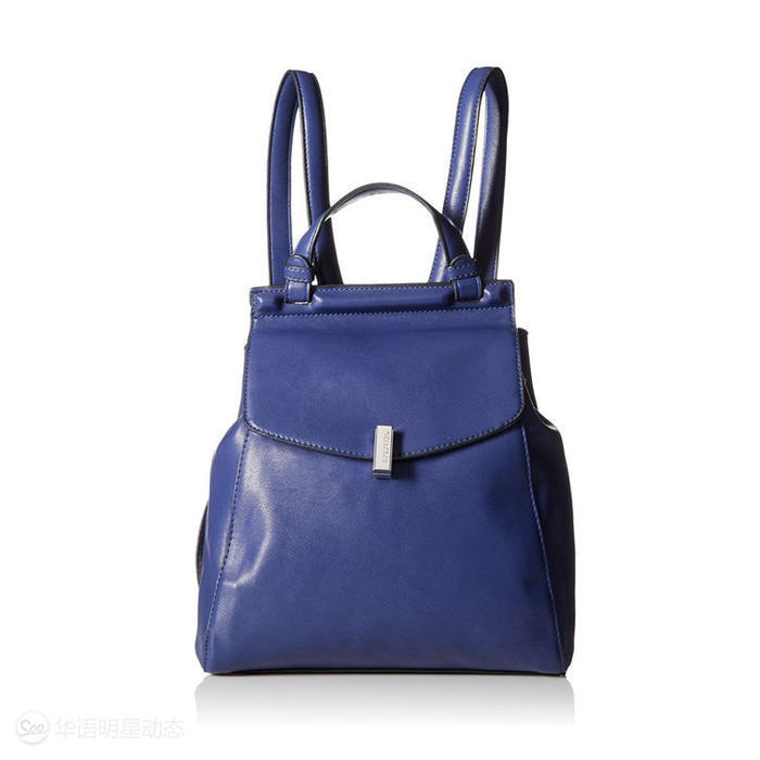 同天她还试了Longchamp宝蓝色双肩包,这个颜色也是绝对醒目。