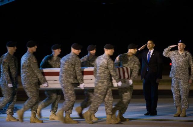 ▲ 2009年,时任美国总统奥巴马访问特拉华州的多佛空军基地,见证了18名在阿富汗丧生的美军士兵遗体“魂归故里”。